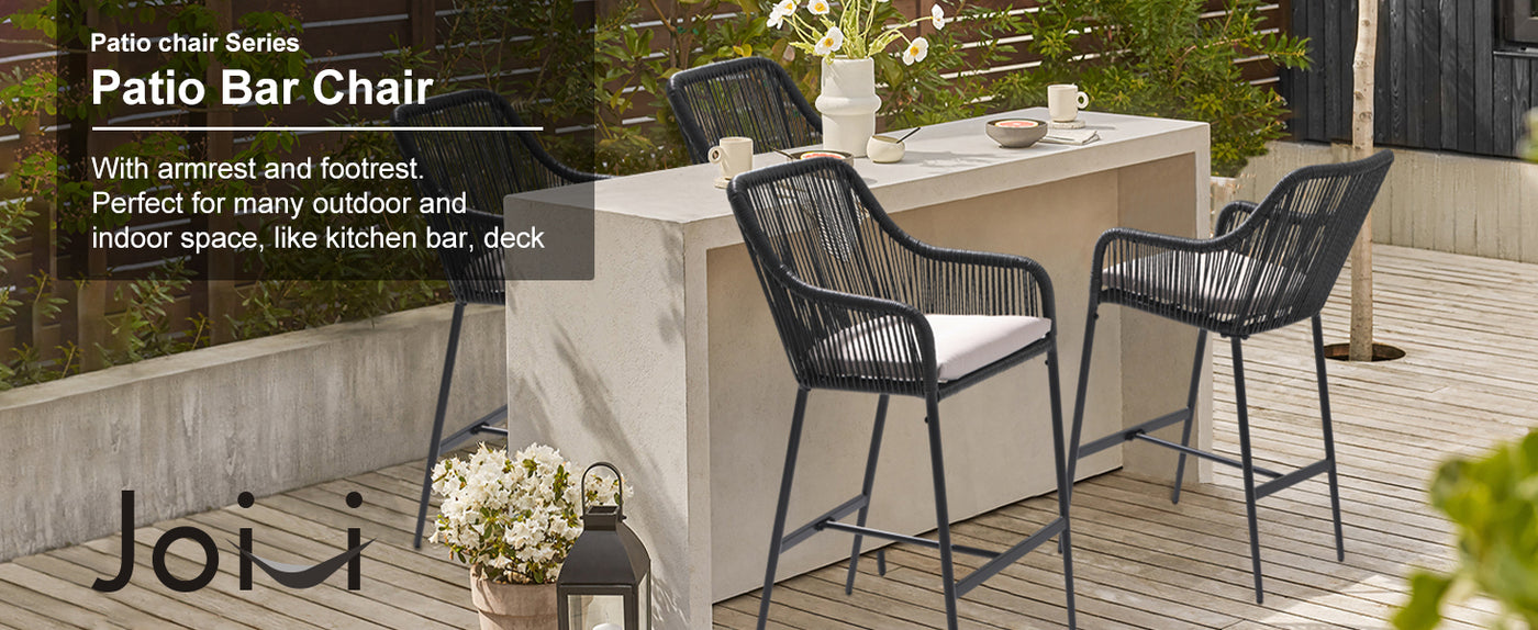 Durable Construction: Made with all-weather PE rattan and rust-proof powder-coated iron frame, these bar stools by JOIVI support up to 330 lbs each, perfect for outdoor gatherings.