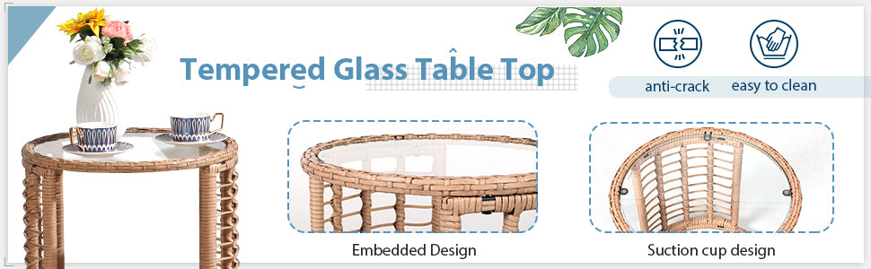 - Low Maintenance: Tempered glass table top; easy to clean with a wet cloth; adjustable foot pads for stability.