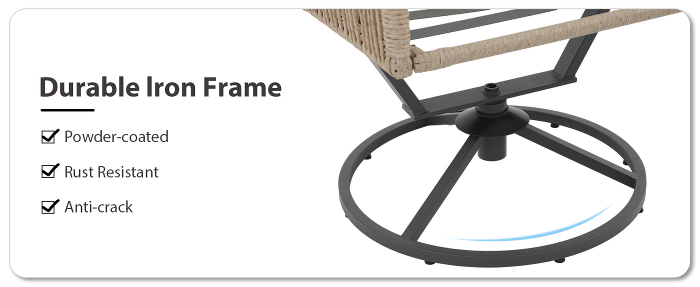 - Versatile Use: Stylish swivel chairs for both indoor and outdoor spaces, from patios to living rooms.