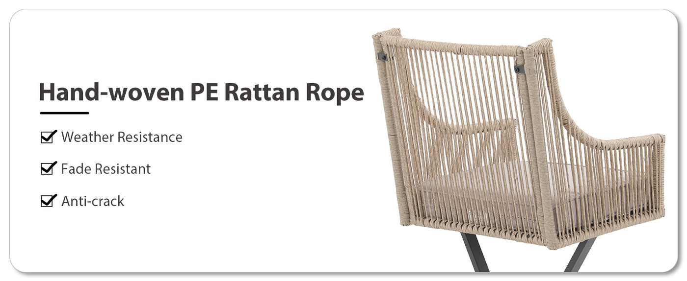 - Durable Handwoven Design: Featuring a rust-resistant iron frame and handwoven rattan, each chair supports up to 350 lbs.