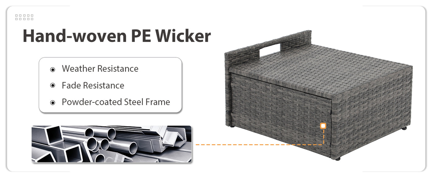 - Durable and Sturdy: Weather-resistant PE rattan with powder-coated steel frame; UV protected and fade resistant.