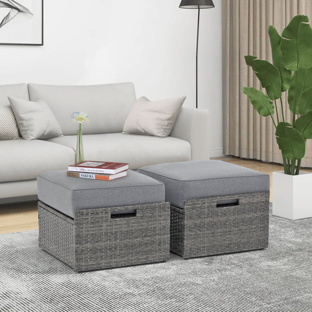 JOIVI 2 Pieces Outdoor Patio Ottoman with Thick Cushions