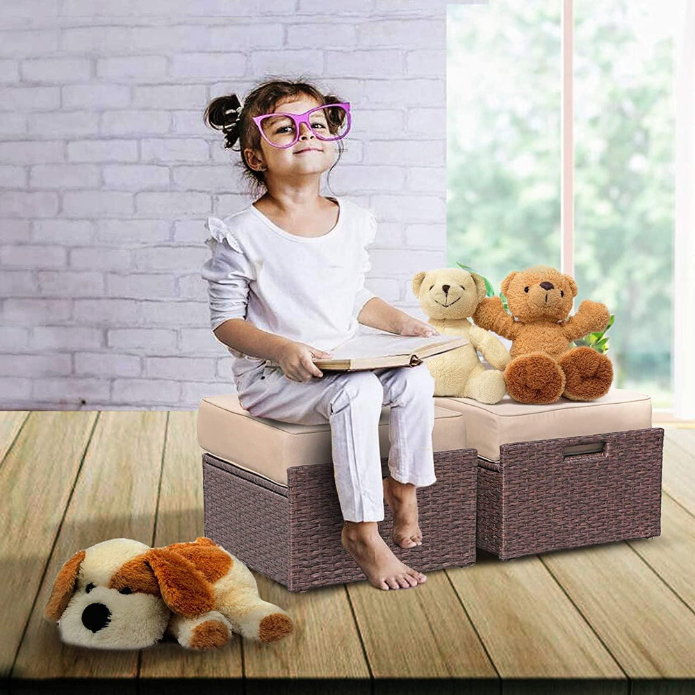 - Stylish and Easy to Maintain: Classic brown rattan with beige fabric; wipe clean with a damp cloth.