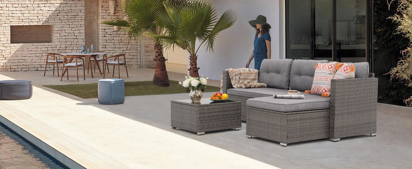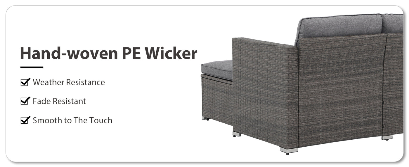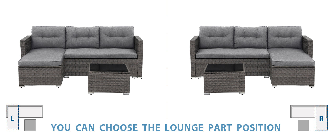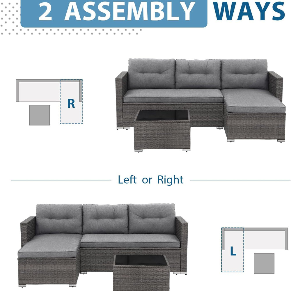 JOIVI 3 Pieces Patio Conversation Set, PE Wicker Rattan Outdoor Furniture Set, 2 Ways Small Sectional Sofa with Cushions, Tempered Glass Coffee Table - Silver-gray is backordered and will ship as soon as it is back in stock.