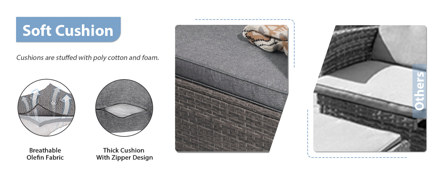 - Comfortable: Thick poly cotton and foam seating cushions with ergonomic backrest cushions.