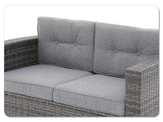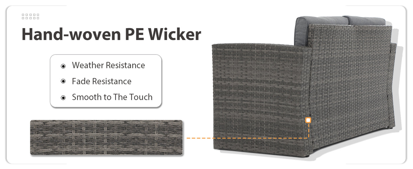 This outdoor patio couch is wrapped in PE rattan while adding a reinforced structural design under the seat. The entire chair can hold up to 350 lbs. You can use at ease for years to come.
