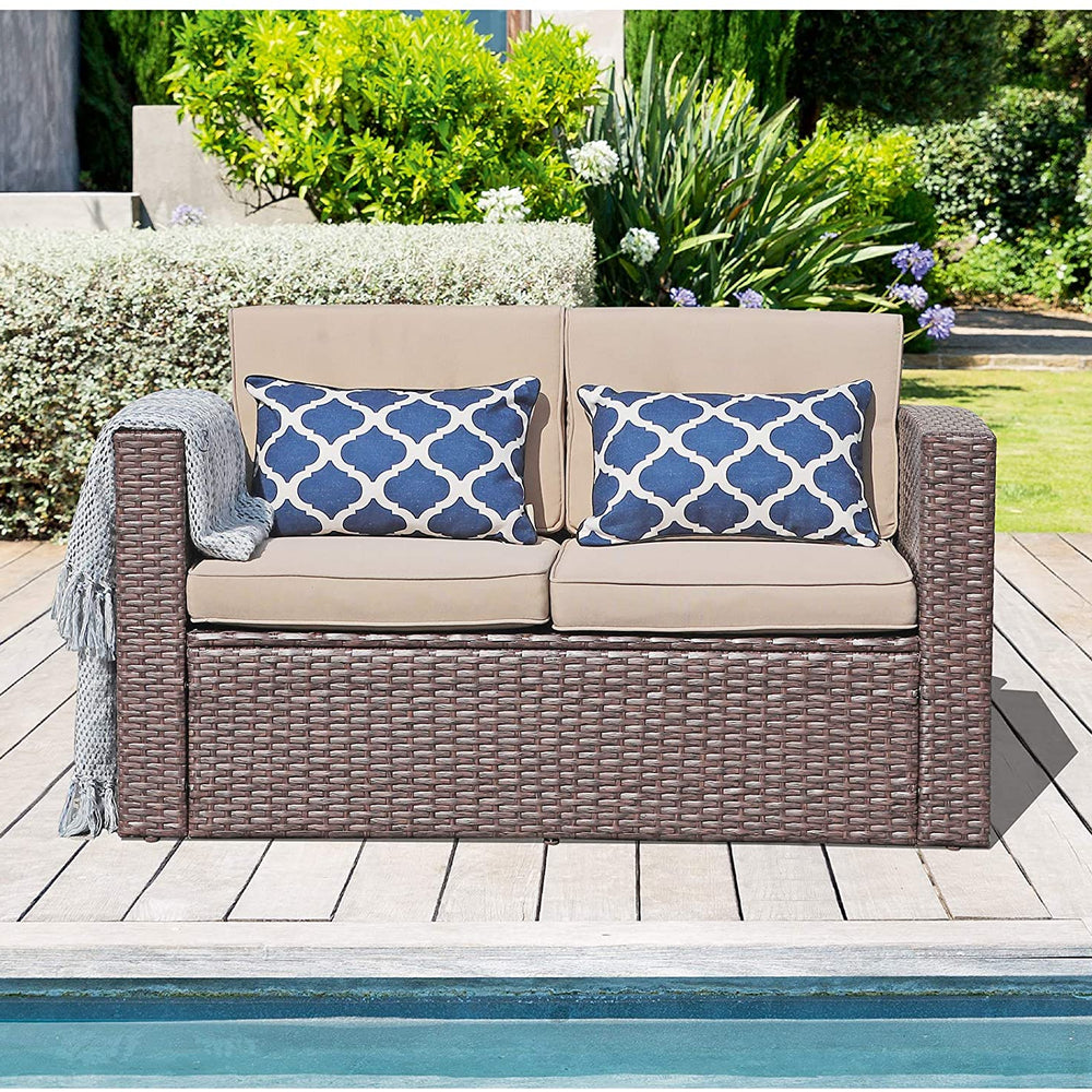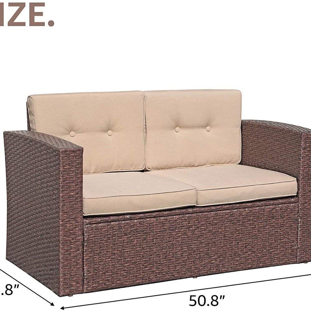 JOIVI Patio Outdoor Wicker Loveseat Sofa, Patio Furniture Rattan 2-seat Couch with Cushions - Brown is backordered and will ship as soon as it is back in stock.