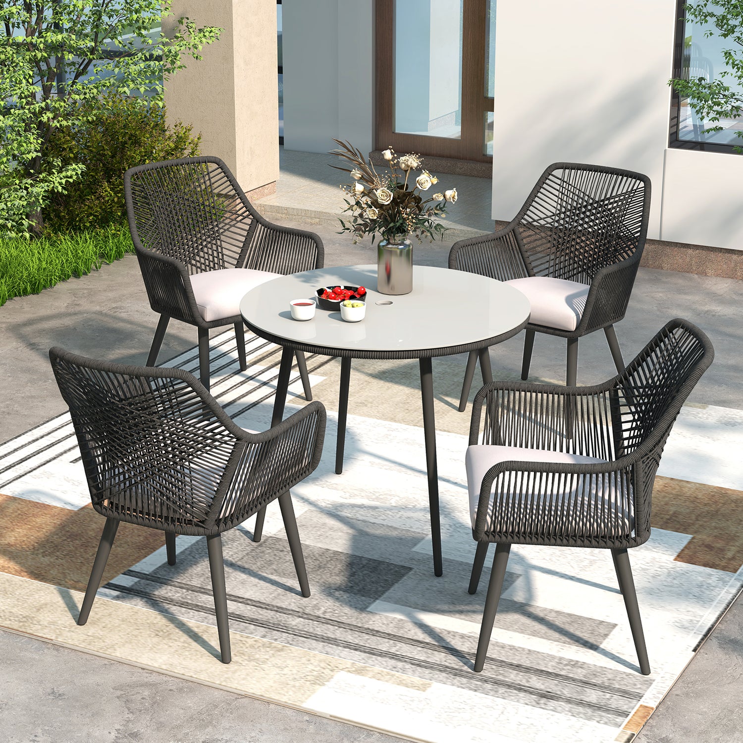 Versatile Application: The lightweight design of outdoor dining set for 4 is easy to move, and outdoor dining table set is suitable for patio, balcony, porch and indoor. The natural rattan texture of outdoor patio table set is compatible with rustic, modern or bohemian styles, which can be used individually or in groups to match the party scenes.