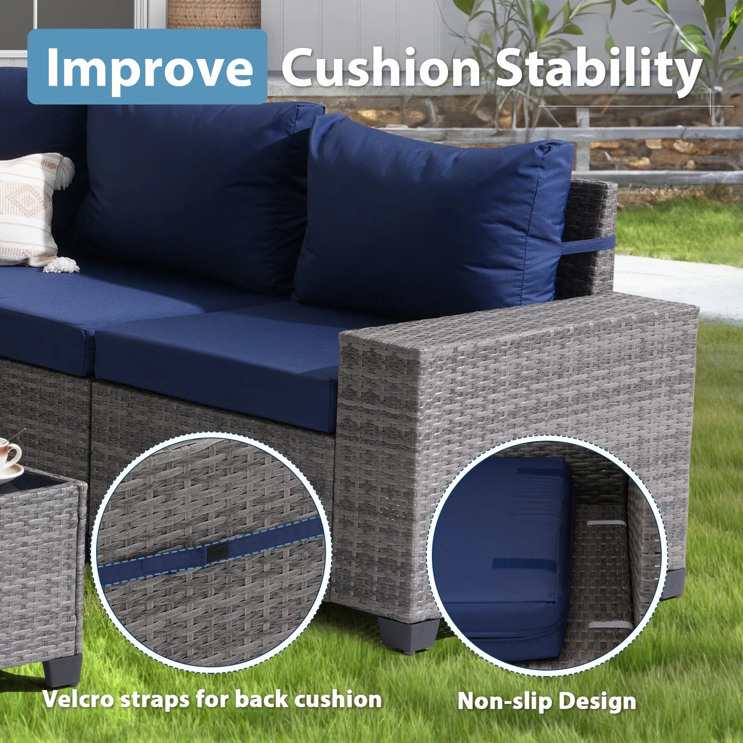 Flexible Combination Sofas: In order to meet your different requirements for venue placement, we offer an additional side piece. It can make a corner sofa turn into an armless sofa. This gives more combination possibilities for this patio sectional sofa set. You can place them on the poolside, lawn, porch and many other places.