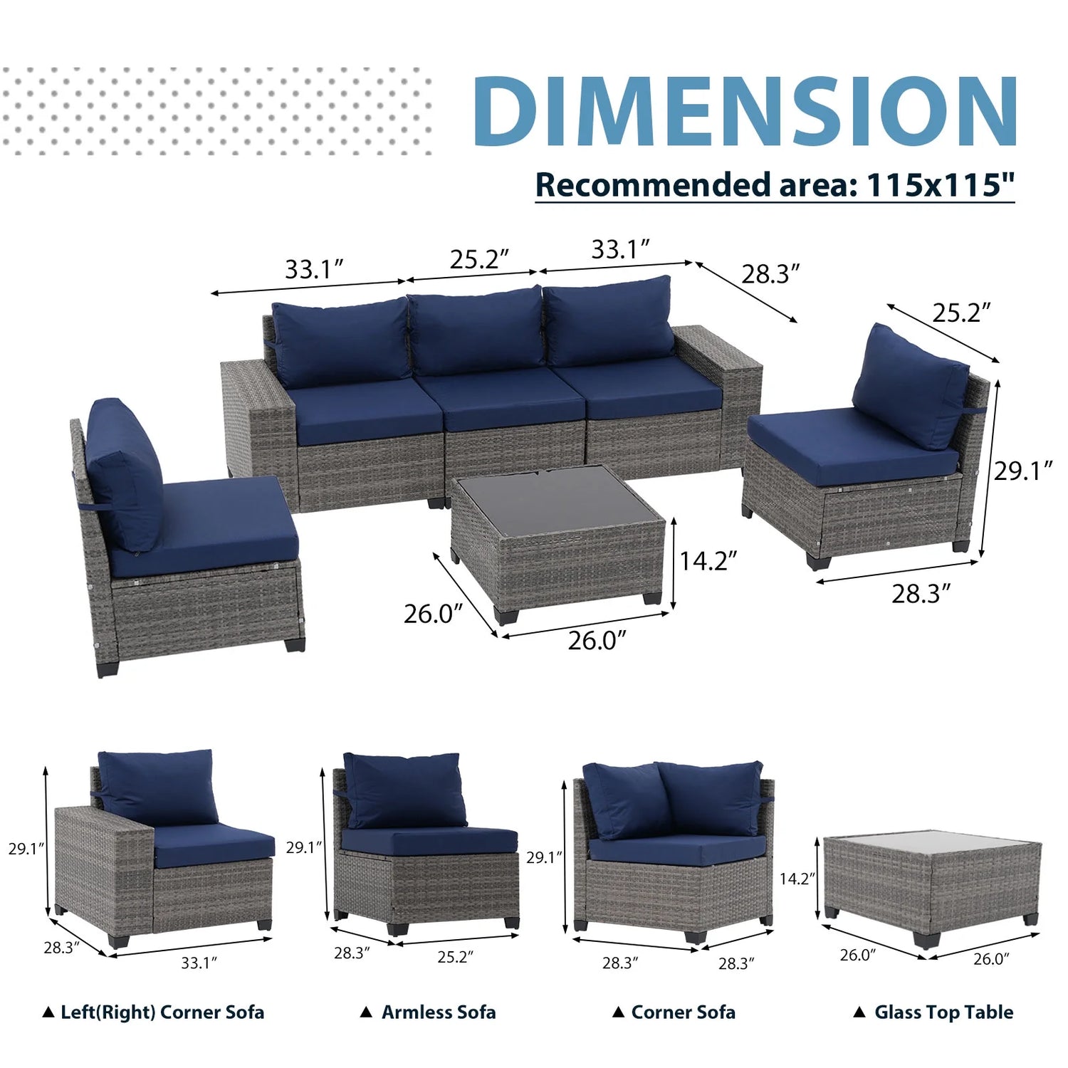 Enhanced Comfort with Wide Armrest: Our 6-piece patio conversation set is designed with 8” wide armrest. Not only does it provide a super-comfortable resting place for your hand, but also can be used as a side table for laptop, coffee, books and etc.