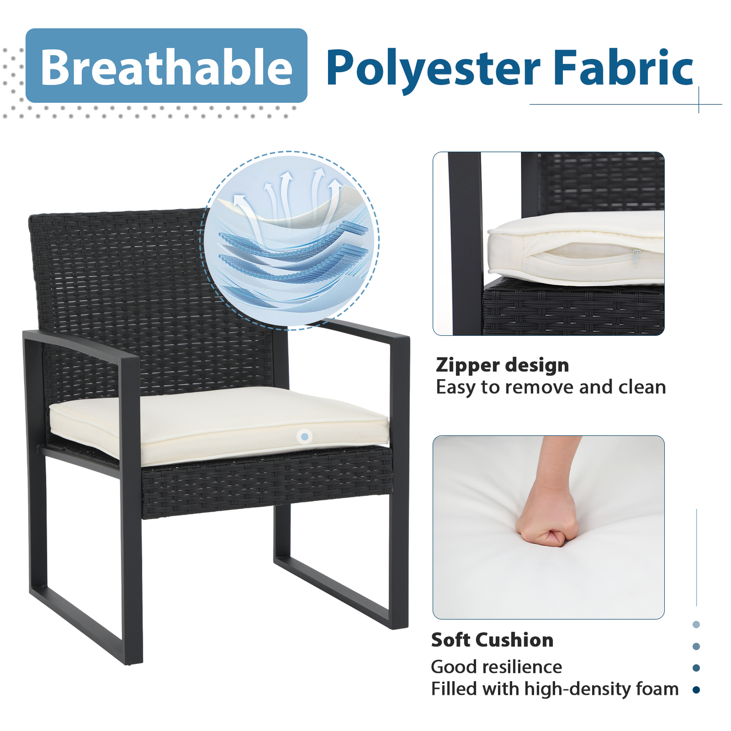 JOIVI 3 Pieces Wicker Patio Bistro Set, Outdoor Rattan Furniture Conversation Set with Tempered Glass Top Table
