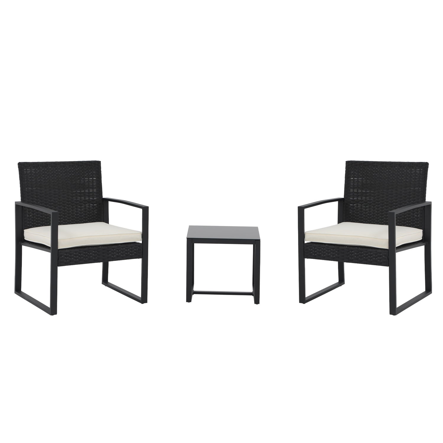 JOIVI 3 Pieces Wicker Patio Bistro Set, Outdoor Rattan Furniture Conversation Set with Tempered Glass Top Table - Black is backordered and will ship as soon as it is back in stock.