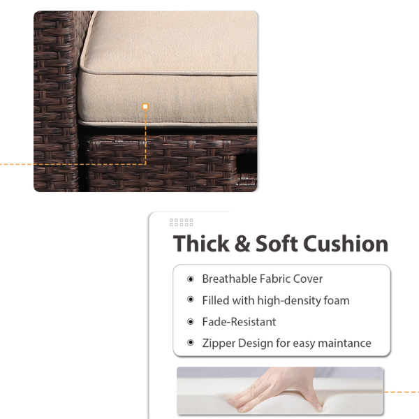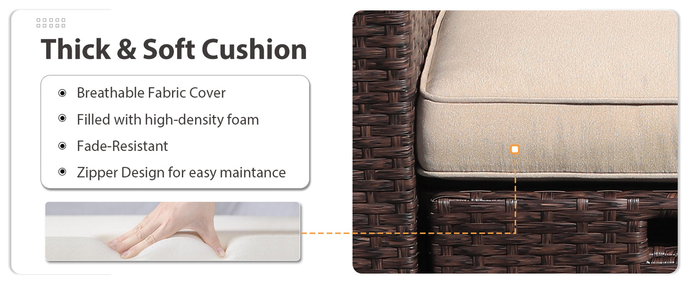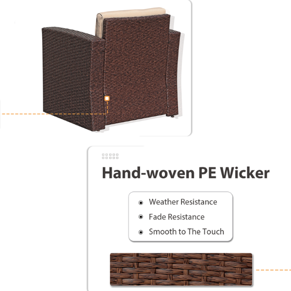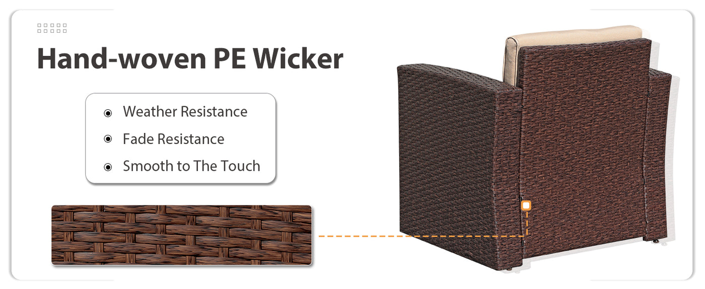 - Sturdy & Durable: Powder-coated steel frame and all-weather PE rattan resist fading and UV damage, ensuring long-lasting appearance.