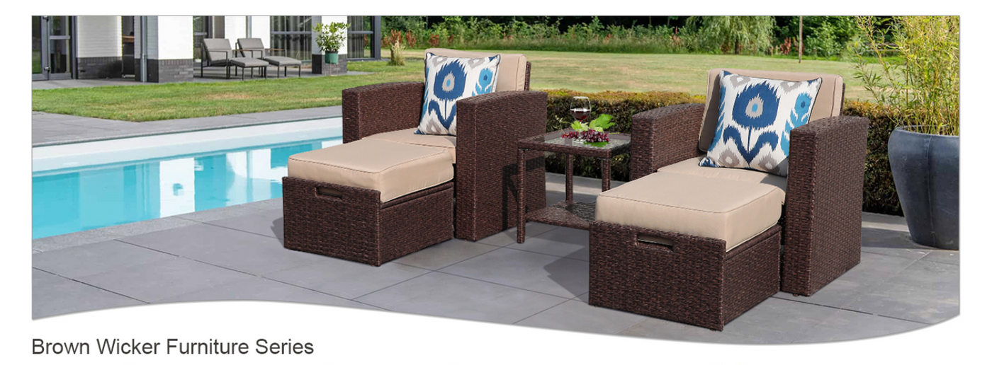 - Attractive Design: Includes 2 chairs, 2 ottomans, and 1 coffee table, perfect for balconies, pools, gardens, porches, or backyards.