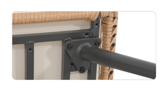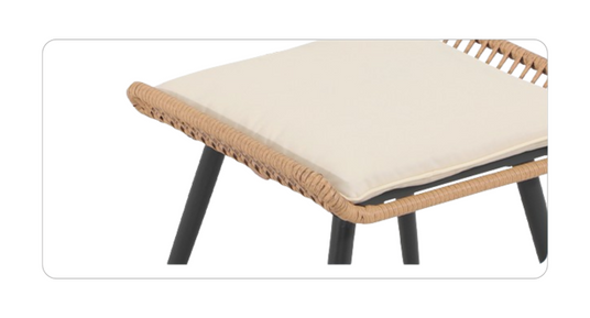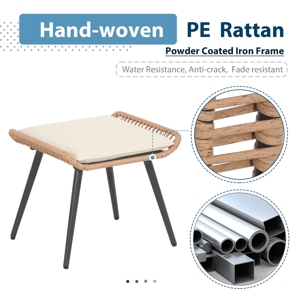 This wicker ottoman is made of powder coated iron frame and hand-woven PE wicker.