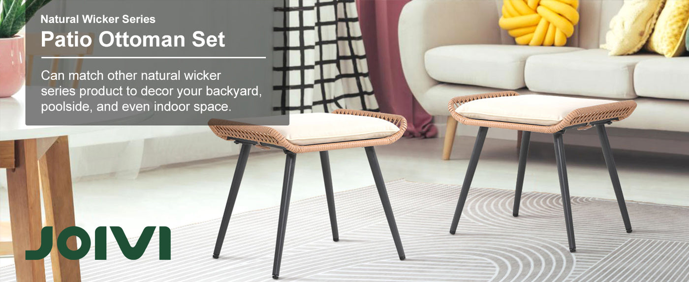 JOIVI Outdoor Wicker Ottoman Set of 2